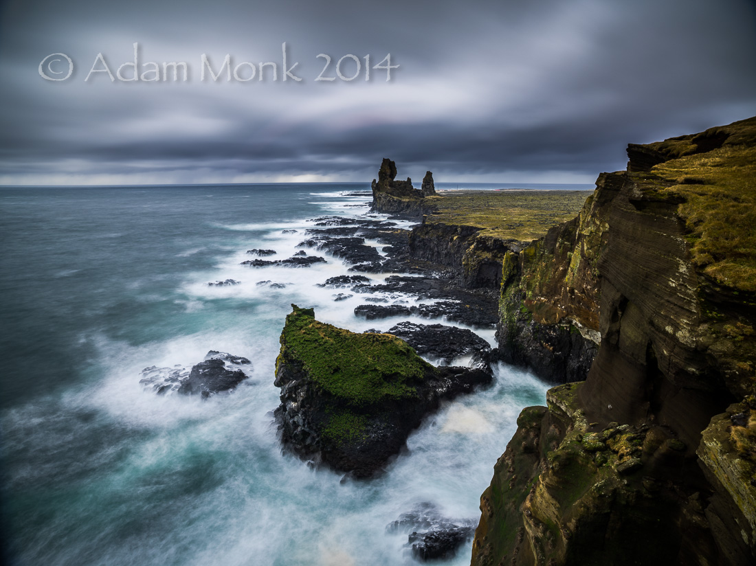 Of course the best thing about weather like this is the wonderful skies with wild clouds zooming overhead at high speed. It makes for a great place to play with ND filters and long exposures. For this shot below, I was literally hanging off of the tripod to stop it blowing off the cliff, with camera attached… a camera that costs more than my car… actually a lot more than my car.