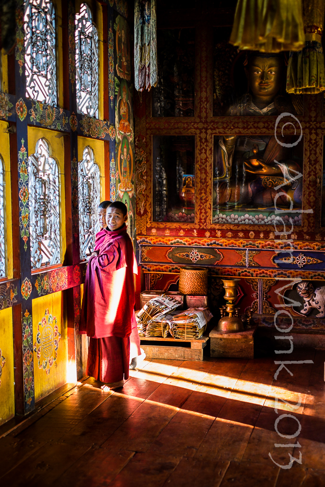 A more subtle shot of the Monks of Gangtey Monastery, this is shot inside the temple with the permission of the abbott and the Monks. Not really an appropriate place to use the Hasselblad, so this one is shot on the Fuji XPro-1, a remarkable little camera that hardly makes a sound! Just what you need for inside a temple as the Monks are chanting. This image was shot on my latest photo tour of Bhutan.