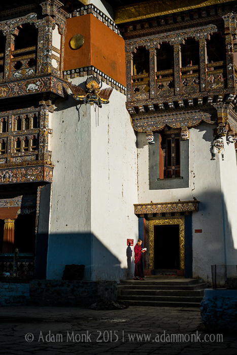 There is a lovely small Monastery I always visit on my Bhutan Photographic tours each year, on the slopes of the Phobjikha Valley in Western Bhutan. Normally it’s very quiet and serene with just a few peaceful Monks and a stunning view down the valley. As I have been going there for quite a few years, we usually get invited in to photograph the morning prayers in the small temple, a special privilege not normally granted (see this post). Not this year.