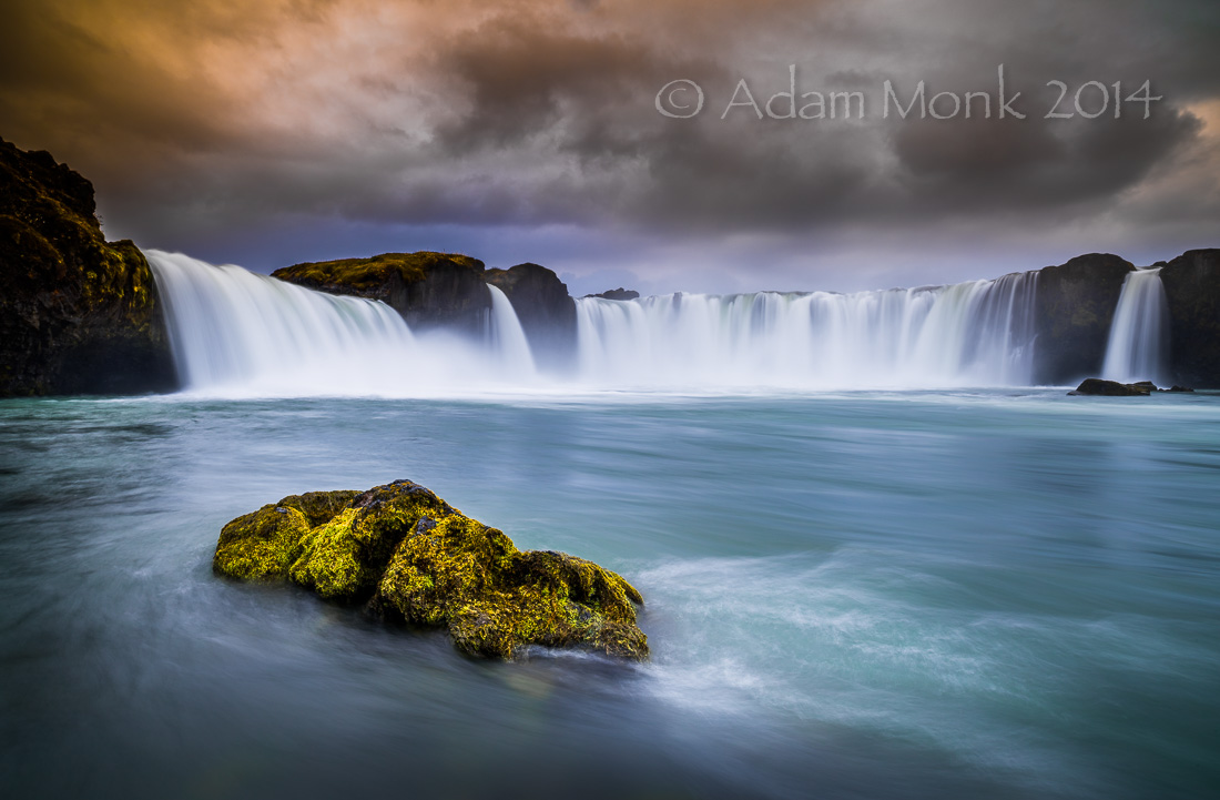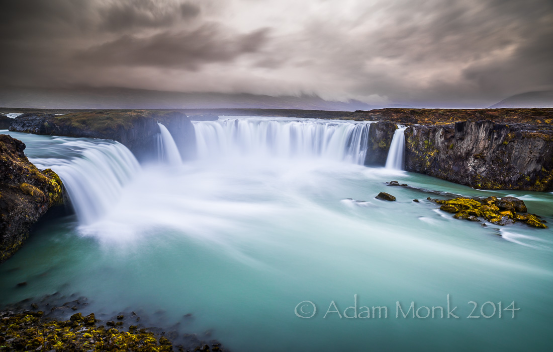 Godafoss waterfall in Iceland is a pretty special place, so I stayed there for a sunset and a sunrise and shot it from both sides. At least somewhere above the clouds there was a sunset and a sunrise. Fortunately overcast light works really well for waterfalls, so although it seems like it I am not really complaining. The clouds were beautifully defined with lots of great heavy texture, I even got some colour in the clouds above the falls for this shot. This is pretty much the raw capture with a few minutes of tweaking in Lightroom, mostly just contrast and white balance. I think this one will come up nicely with a little bit of digital magic.