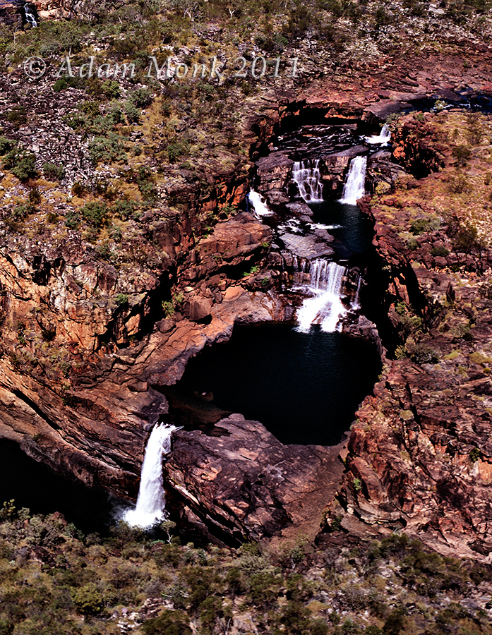 More aerial images from the Kimberley, this one also from last year. This is what Mitchell falls, up on the Mitchell Plateau usually looks like in the dry season. Its a spectacular waterfall that cascades over 4 tiers before dumping into the Mitchell River and flowing out to sea on the North Kimberley coast.
